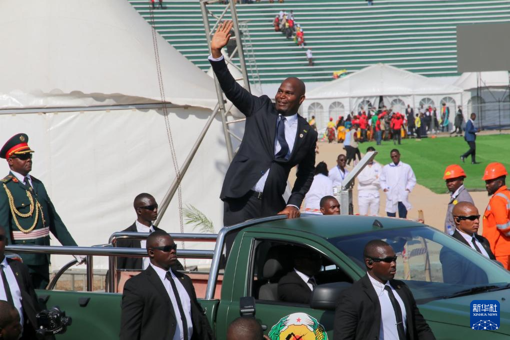 6月25日,莫桑比克总统查波在马普托省马托拉市举行的莫桑比克独立50周年庆典上向观众致意。