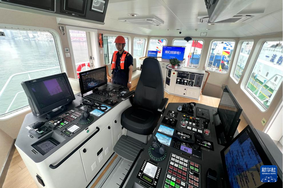 这是6月26日拍摄的“氢电拖1”轮驾驶舱。
