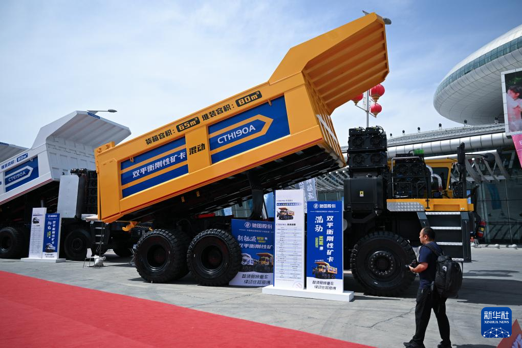 6月26日在2025(中国)亚欧商品贸易博览会上拍摄的一款混动矿卡。