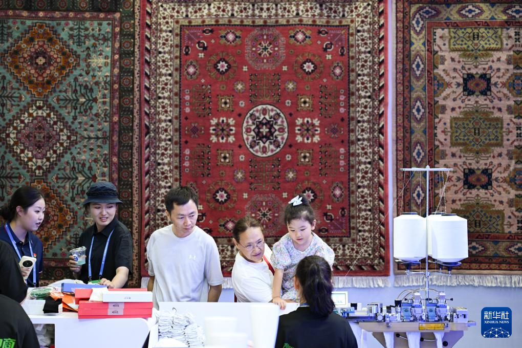 6月26日,与会者在2025(中国)亚欧商品贸易博览会上了解一家新疆本土纺织企业的产品。