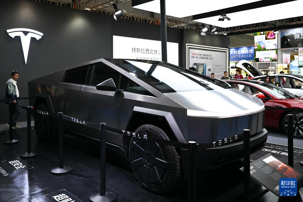 6月26日在2025(中国)亚欧商品贸易博览会上拍摄的特斯拉Cybertruck。