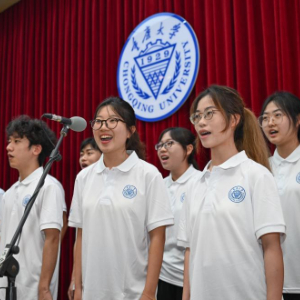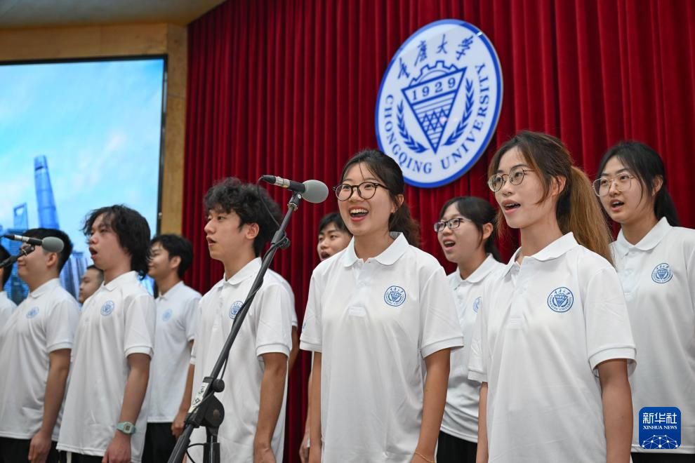 6月26日,重庆大学志愿者代表演唱歌曲《我们都是追梦人》。
