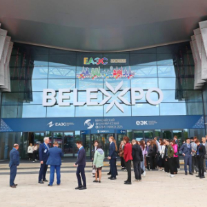 6月26日,在白俄罗斯明斯克,欧亚经济论坛与会者在明斯克国际展览中心内参观。