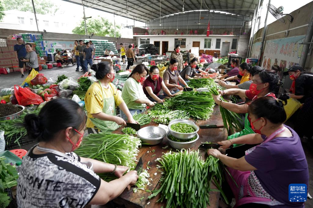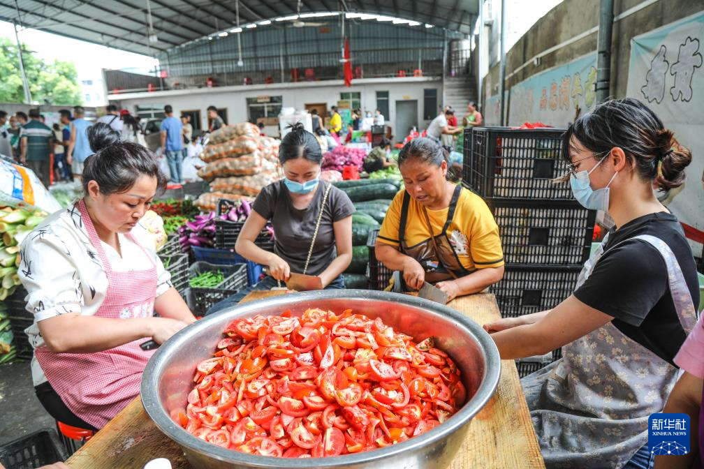 6月27日,村民在贵州省榕江县忠诚镇一处后勤伙食保障点切菜。