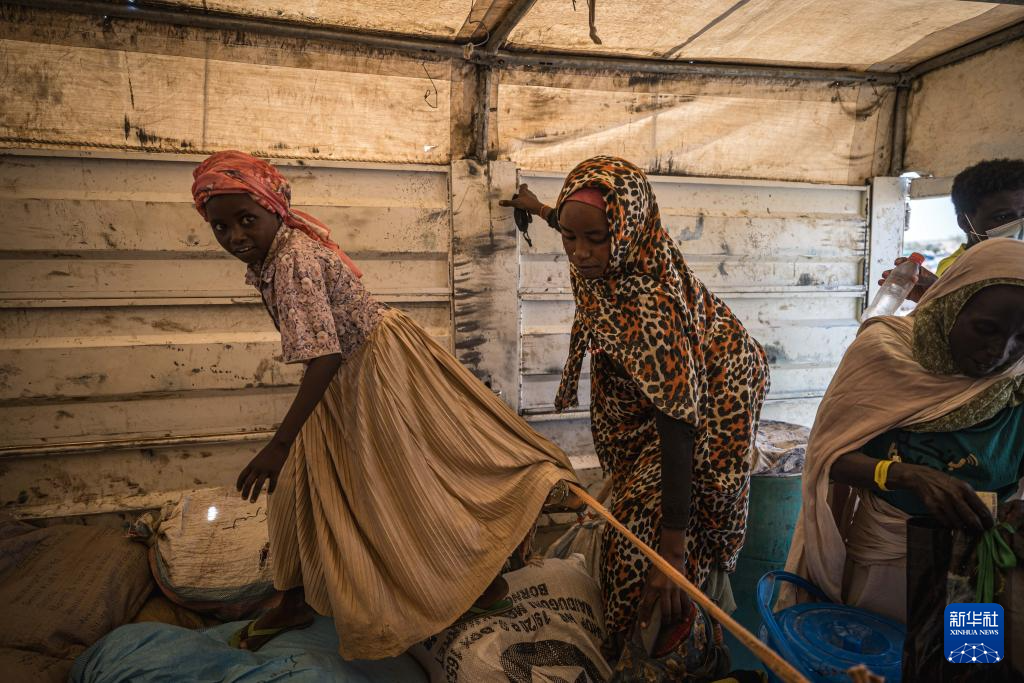 6月26日,苏丹难民在由乍得东部城市蒂内开往伊里迪米的转运卡车上等待发车。