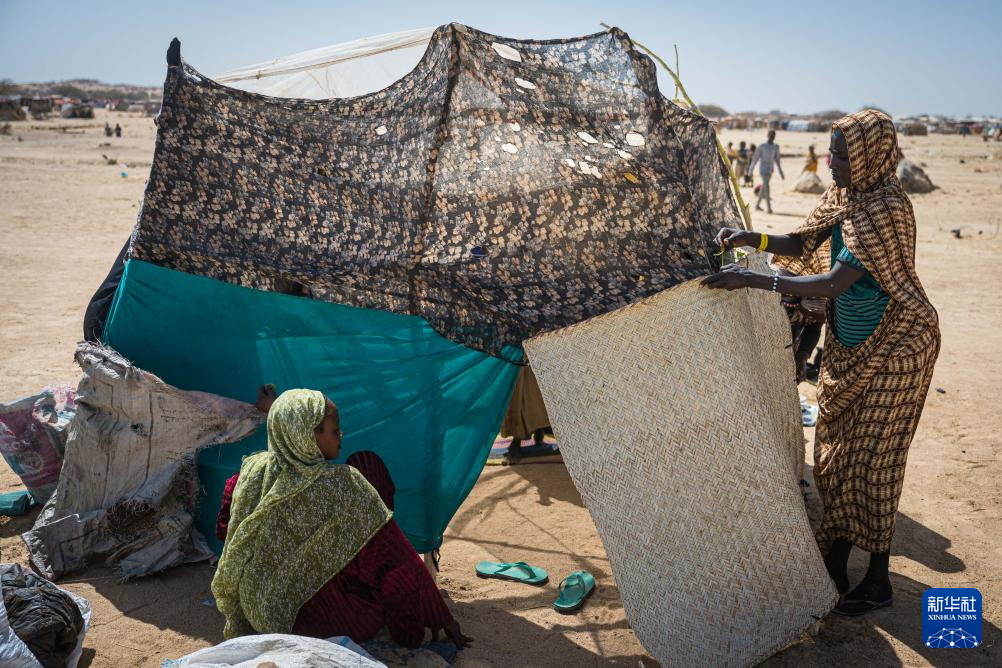 6月27日,苏丹难民在乍得东部城市伊里迪米的难民安置点搭设简易帐篷。