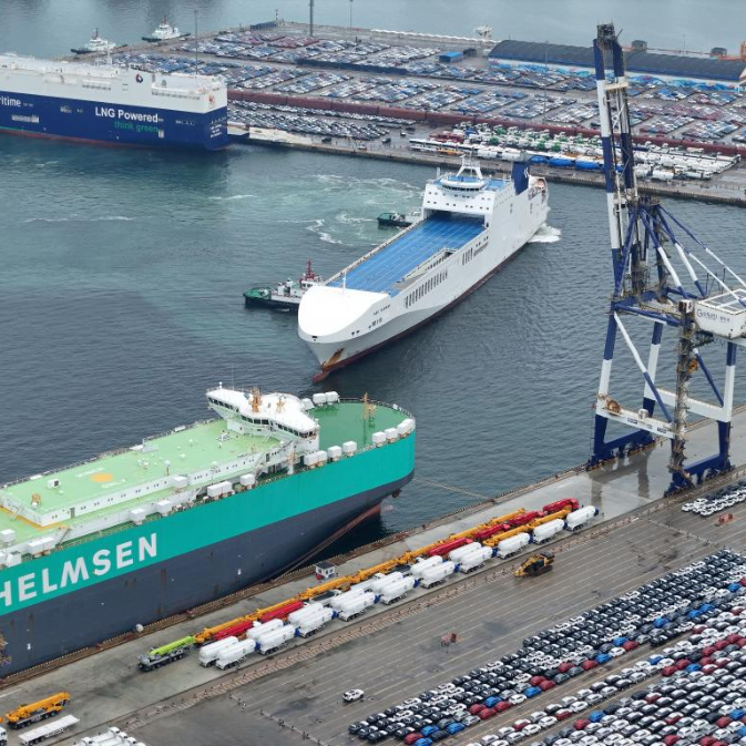 连日来,在山东港口烟台港,大批出口车辆集结待发,汽车运输船穿梭往来,一派繁忙景象。今年1-5月,烟台港完成商品车运量29.6万辆。目前,烟台港已实现全球主要商品车码头全覆盖、全联通,形成“以航线带货源、以货源促航线”的良性循环。