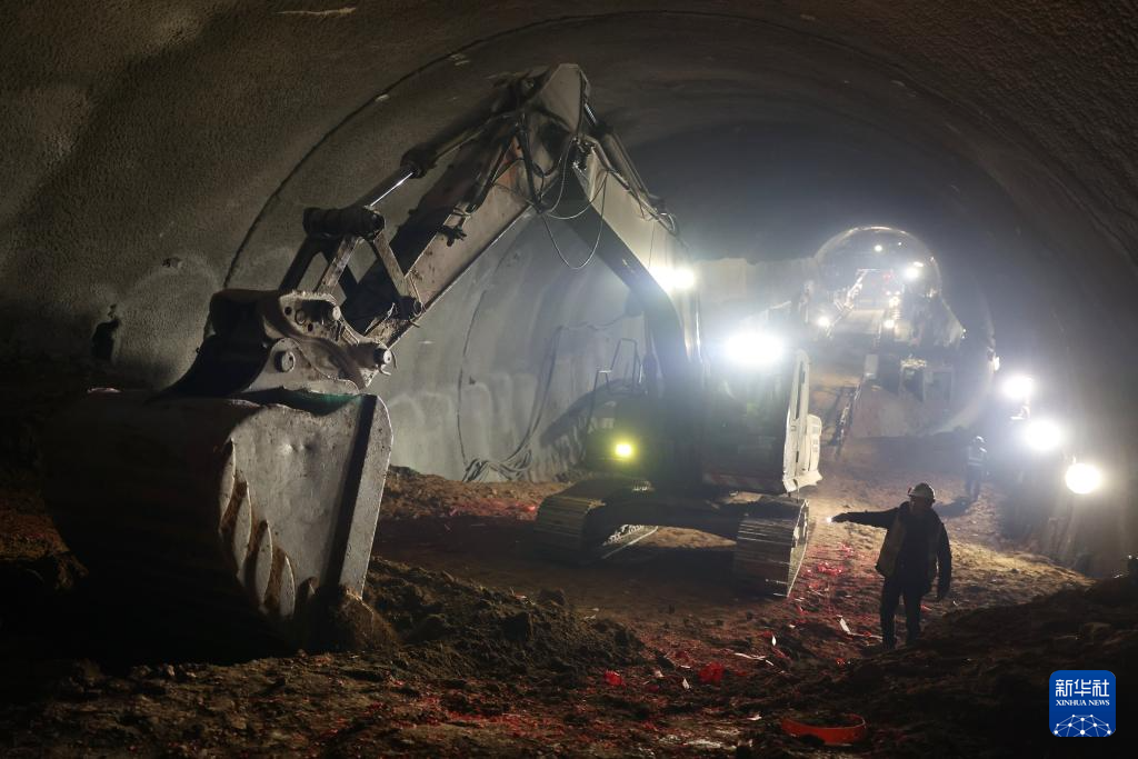 6月29日,工人在已经贯通的西成铁路西科隧道内施工。