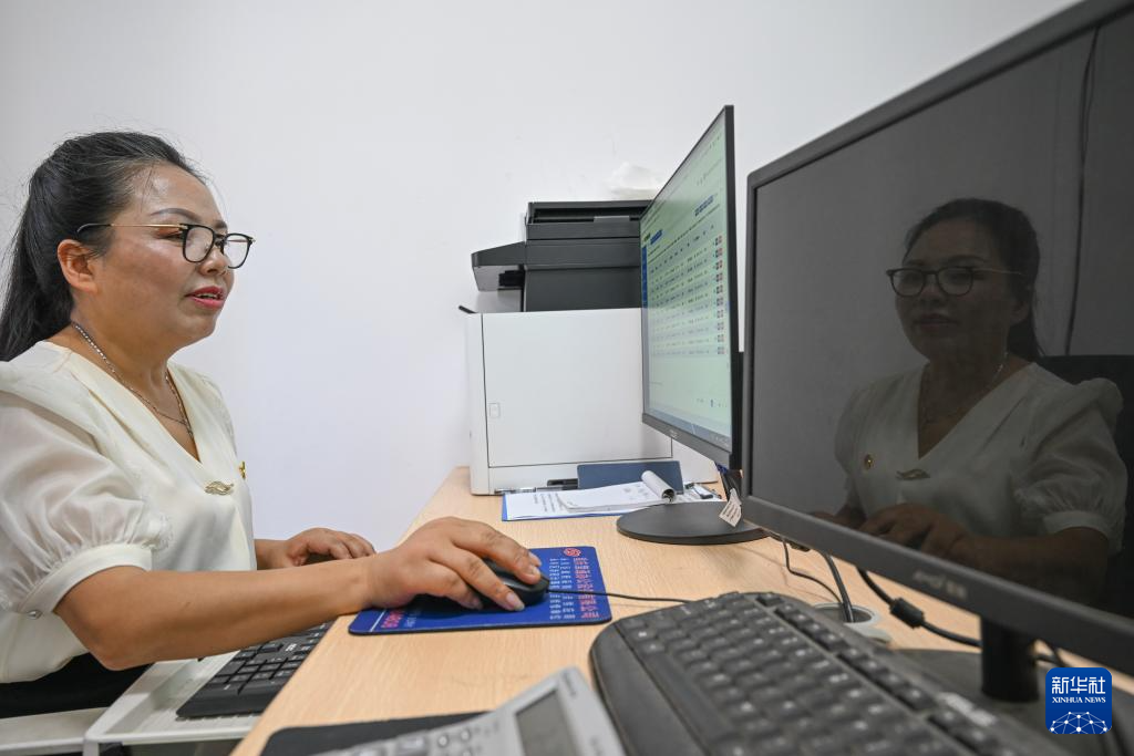 6月27日,重庆市永川区双石镇双石社区工作人员姜春艳在办公室里,通过电脑上的“一表通”系统更新当天收集的最新数据。