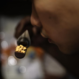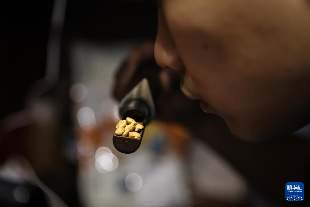 6月18日,刘佳迪通过咖啡豆散发出的气味,判断烘焙情况。