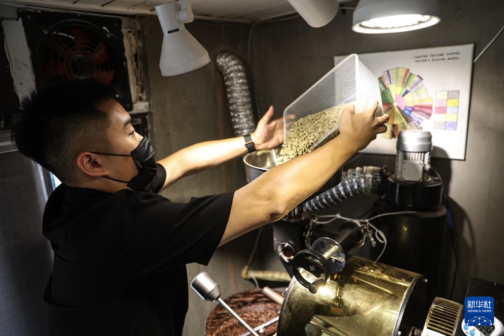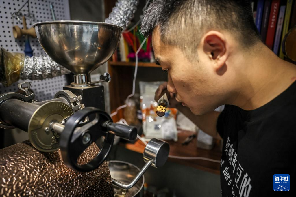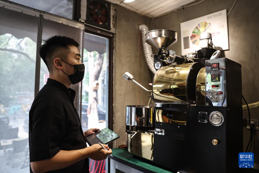 开机、点火、紧盯烘焙曲线……在沈阳市和平区“咖啡小巷”的一家店铺里,咖啡加工工刘佳迪专注地观察着烘豆机里咖啡豆的状态。伴随着噼啪的爆裂声,咖啡豆带着特殊香气滑落到冷却盘中。与咖啡相伴十年的他笑着说:“现在,除了咖啡师,我又多了一层职业身份。”