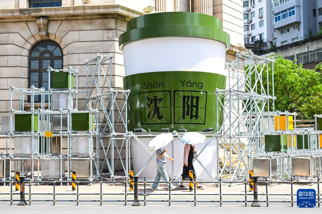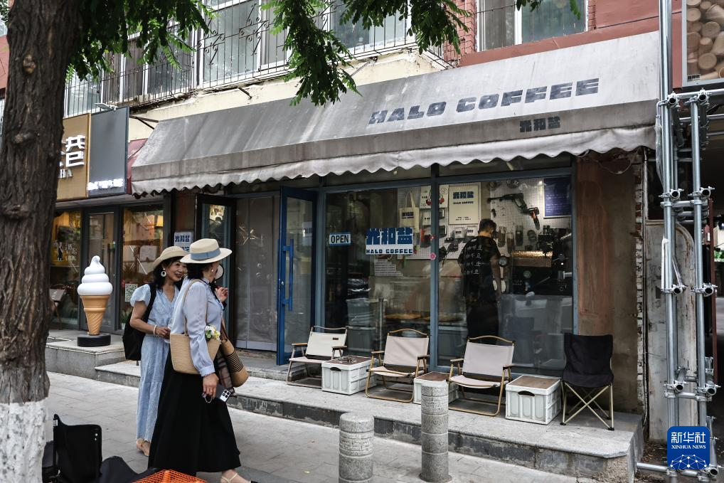 6月18日,在沈阳“咖啡小巷”,游客从刘佳迪的店铺前经过。