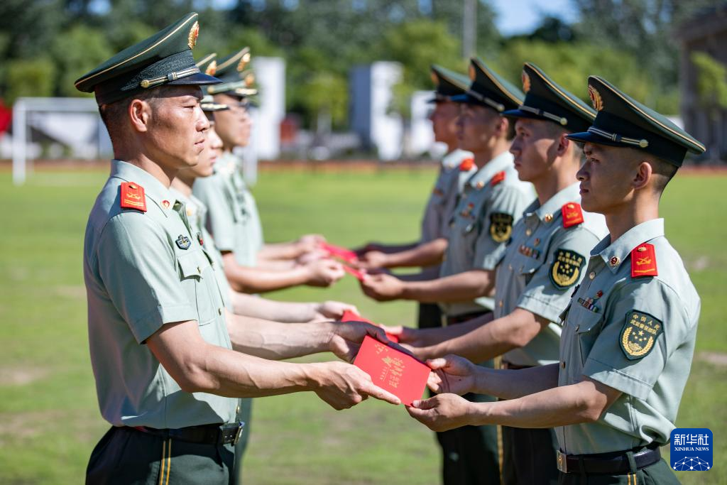 武警上海总队机动第二支队为党员代表颁发“政治生日”贺卡(7月1日摄)。