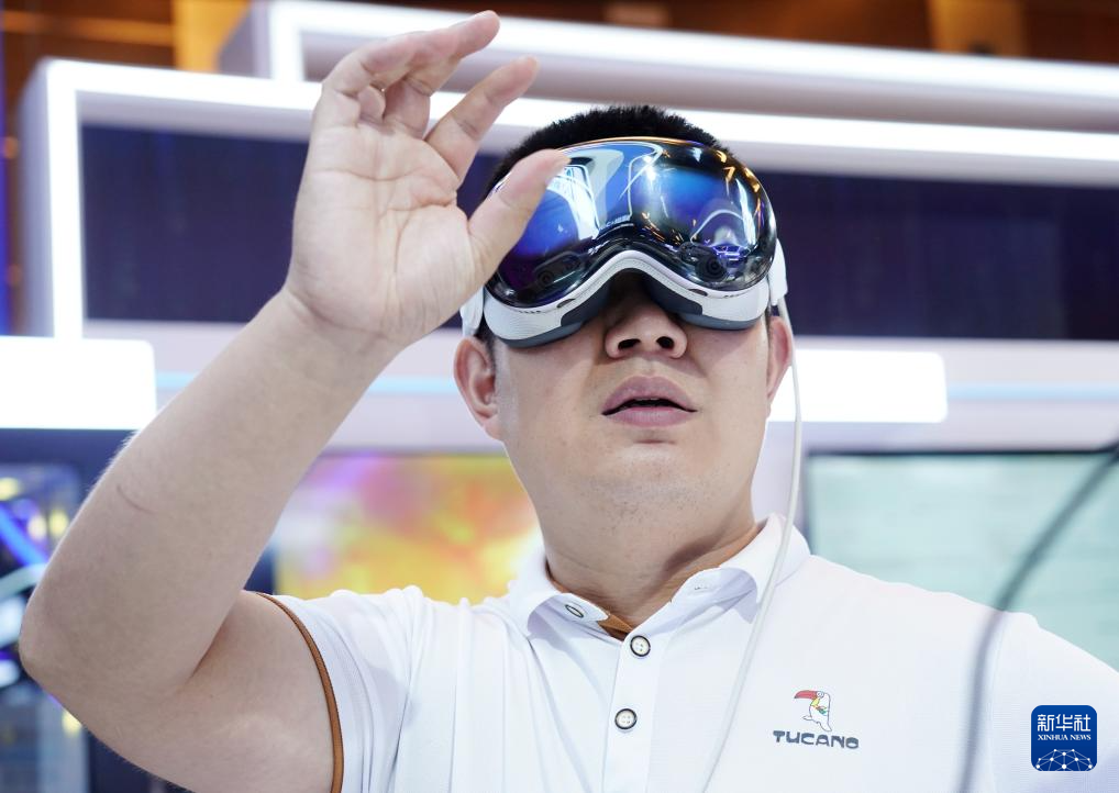 7月2日,参观者在2025全球数字经济大会数字经济国际交流合作体验区体验一款MR混合现实设备。