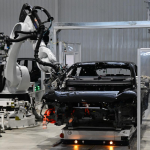 这是位于合肥市肥西县的江淮汽车尊界超级工厂内的自动化焊接生产线,该工厂是江淮汽车携手华为专门为尊界品牌打造的工厂。