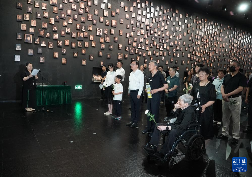 7月2日,南京大屠杀幸存者后代代表和社会各界代表参加熄灯悼念仪式。
