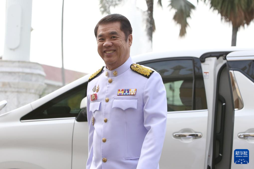 7月3日,在泰国曼谷,代理行使总理职权的泰国副总理兼交通部长素里亚·庄龙琅集抵达总理府。