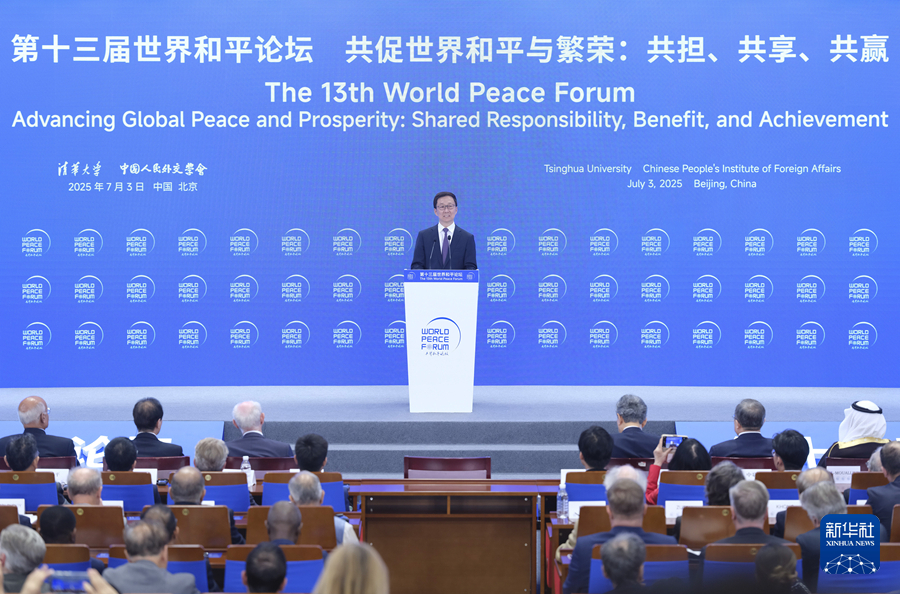 7月3日,国家副主席韩正在北京清华大学出席第十三届世界和平论坛开幕式并致辞。
