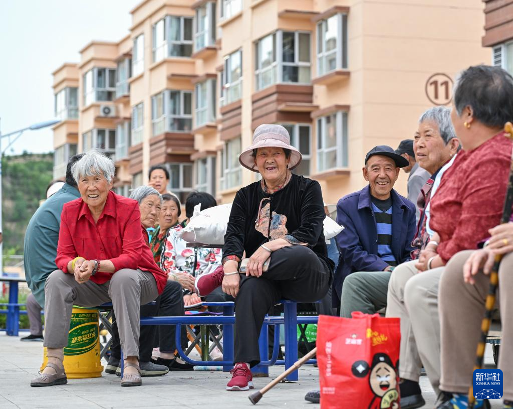 山西省忻州市静乐县小康苑移民安置区居民在小区广场上休息乘凉(7月1日摄)。