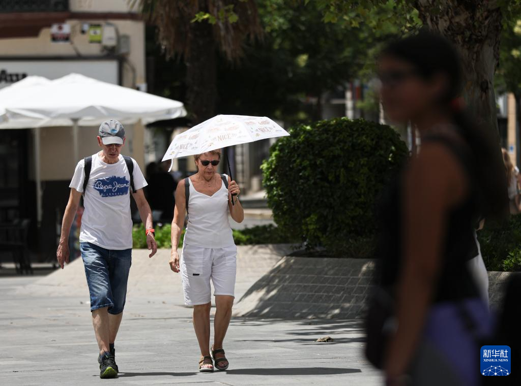 7月2日,在西班牙塞维利亚,人在高温天气下出行。