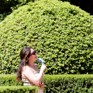 7月2日,在西班牙塞维利亚,一名女子用小风扇降温。