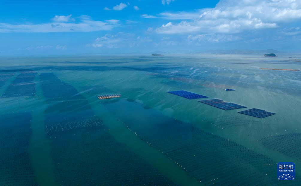 这是连江黄岐半岛海域海投国家级海洋牧场全景(7月3日摄,无人机照片)。