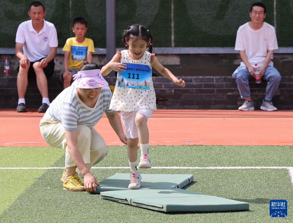 7月5日,在哮喘儿童趣味运动会亲子项目中,家长和孩子一起合作进行“大青虫往返跑”比赛。