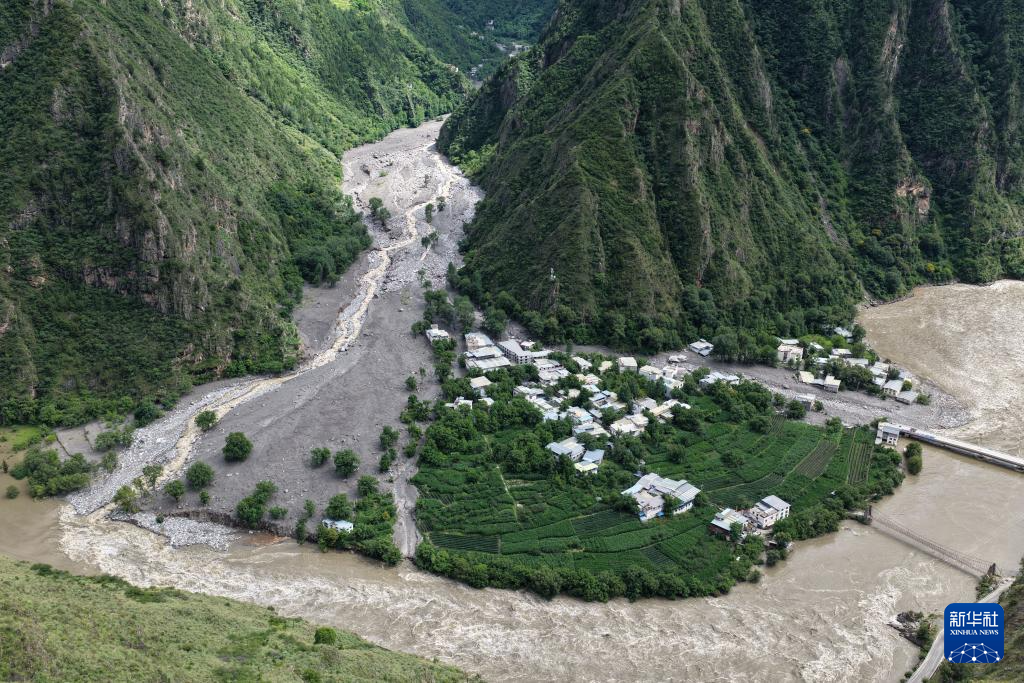 这是7月5日拍摄的四川省甘孜藏族自治州丹巴县巴底镇沈足沟山洪泥石流现场(无人机照片)。