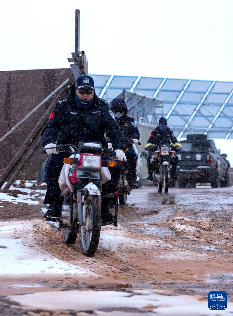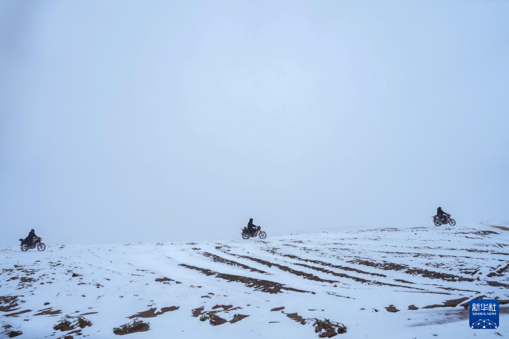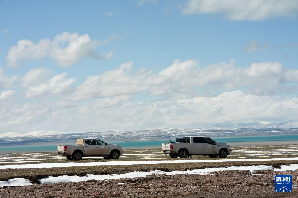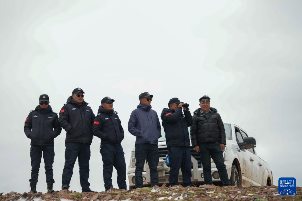 巡山队员在可可西里卓乃湖附近巡护(7月3日摄)。