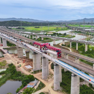 当日,随着最后一榀长32.6米、重431.75吨的箱梁精准架设至预定位置,标志着巢马城际铁路全线箱梁架设完成,为无砟轨道施工和全线按期通车奠定坚实基础。巢马城际铁路是国家“八纵八横”高铁网沪汉蓉快速通道合肥至上海间的重要组成部分,设计时速350公里。