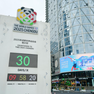 当日,第12届世界运动会(成都世运会)迎来倒计时30天,成都街头巷尾世运氛围渐浓。