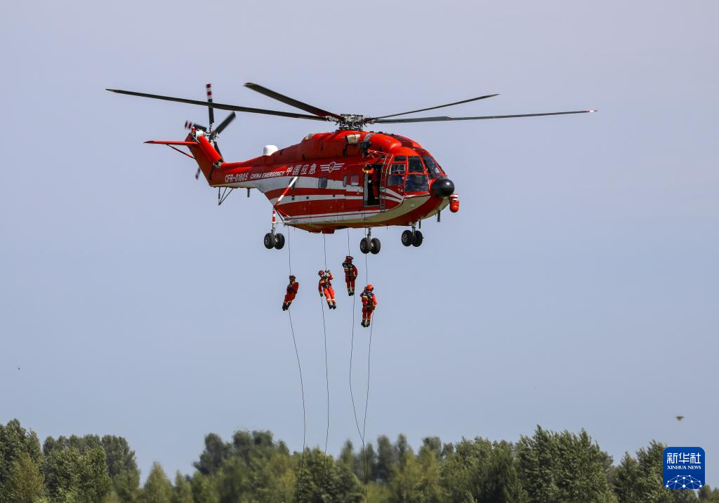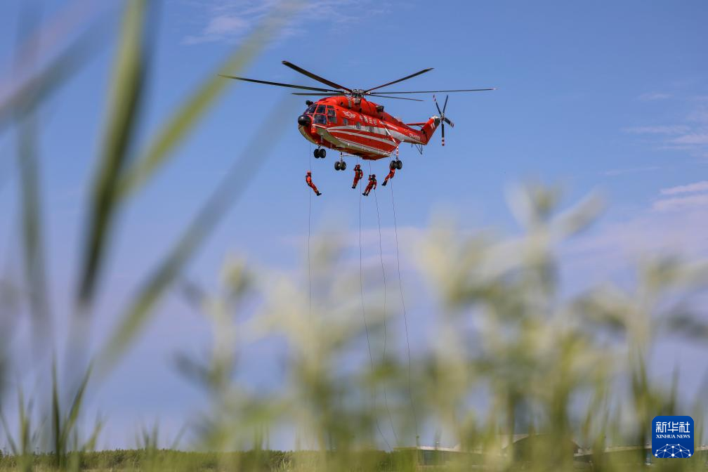 当日,在黑龙江省大庆市,国家消防救援局大庆航空救援支队组织开展直升机空地协同救援训练,锻炼救援人员的水上垂降、“一机四绳”索滑降等项目的救援能力,确保队伍遇有任务能够快速出动、高效处置。