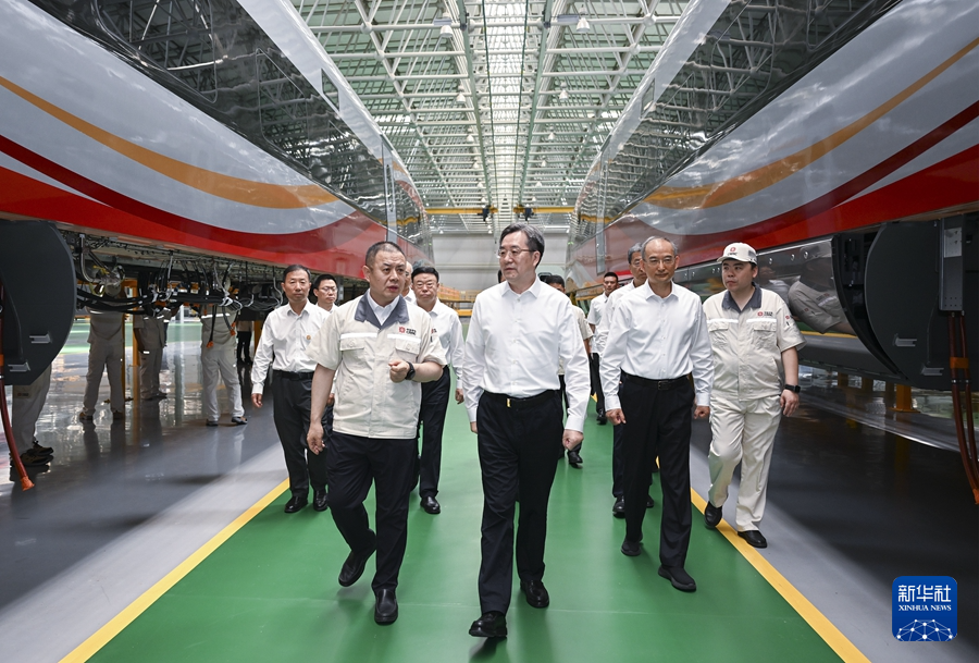 7月7日至9日,中共中央政治局常委、国务院副总理丁薛祥在黑龙江、吉林调研。这是7月8日,丁薛祥在中车长春轨道客车股份有限公司调研。