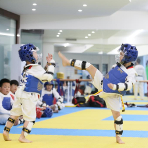 7月10日,在四川省乐山市市中区通江街道春华路一家跆拳道武术馆内,学生在进行训练。