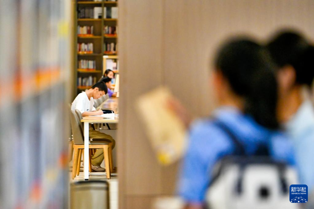 7月12日,在天津市滨海新区中新友好图书馆内,学生在阅读、学习。