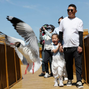 夏日里,平均海拔3500多米的甘肃省甘南藏族自治州碌曲县尕海湿地风光迷人,鸥鸟翔集。游客与在此觅食嬉戏的棕头鸥近距离接触,人鸥和谐共生的画面成为高原湿地的一张靓丽名片。