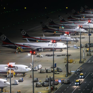 子夜时分,鄂州花湖国际机场灯火通明,几十余架货机整齐排列在停机坪上,上百名工作人员正加紧卸货。当晚,共有来自国内外的近4000吨货物在这里集结中转,再运送到全国和世界各地。