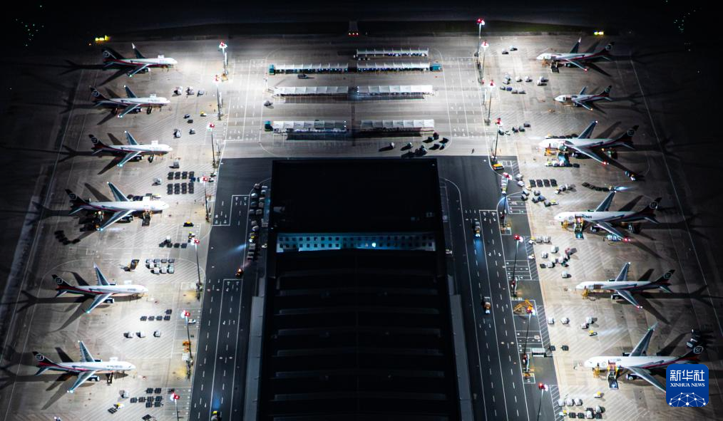 7月11日凌晨拍摄的鄂州花湖国际机场停机坪一角。