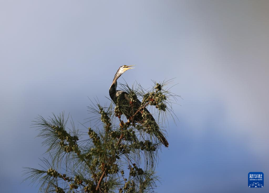 近日,海南昌江海尾国家湿地公园记录到1只被列为近危物种的黑腹蛇鹈。经海南省鸟类记录中心专家确认,这是海南省首次记录到该鸟种。据介绍,该物种已被《世界自然保护联盟濒危物种红色名录》(IUCN)列入近危物种,在我国极为罕见。