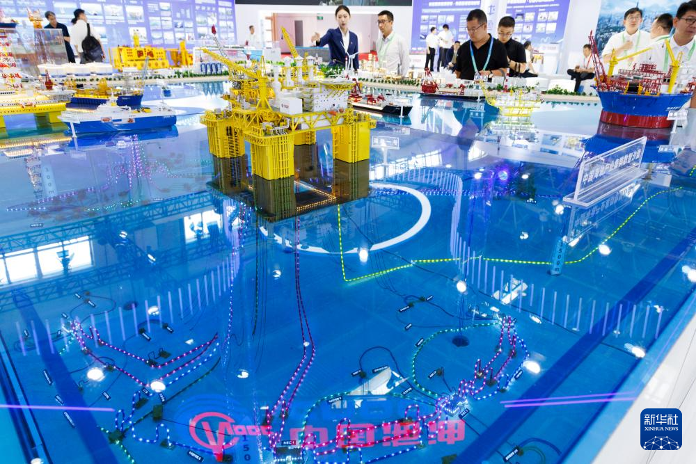 7月16日在清洁能源链展区拍摄的中国海油产业集群数智沙盘。