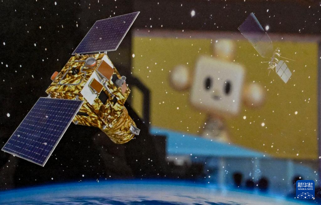 7月16日,在先进制造链展区山东嘉航电子信息技术有限公司展位,产品图片与反射的链博会吉祥物“链氪”相映成趣。