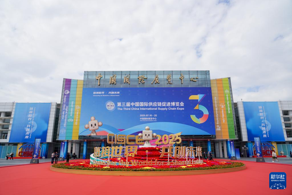 这是7月16日拍摄的第三届中国国际供应链促进博览会会场外景。