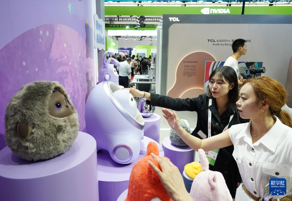 7月16日在数字科技链展区拍摄的分体式陪伴机器人。