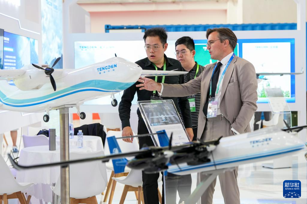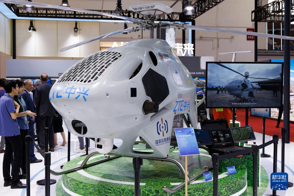 7月16日在数字科技链展区拍摄的大型无人直升机应急救援平台。