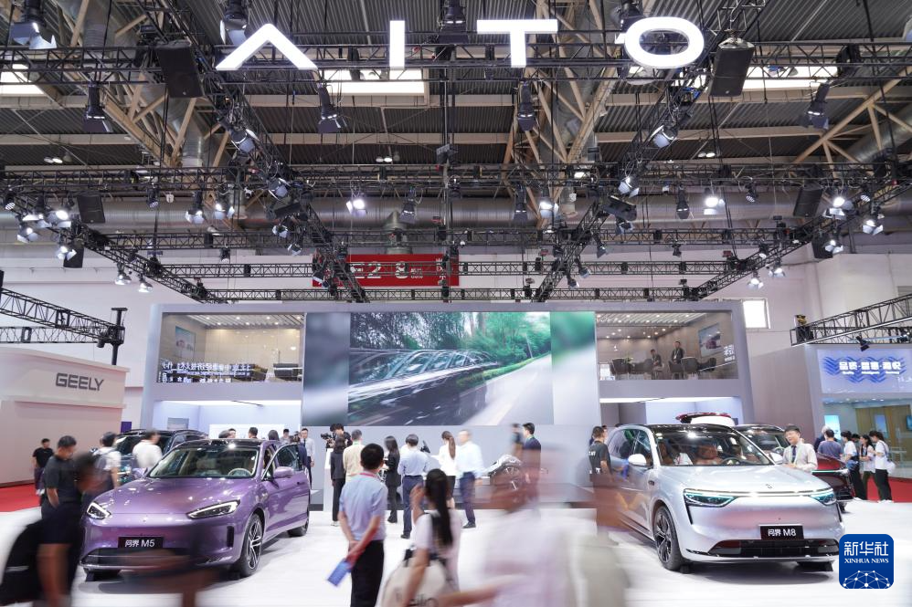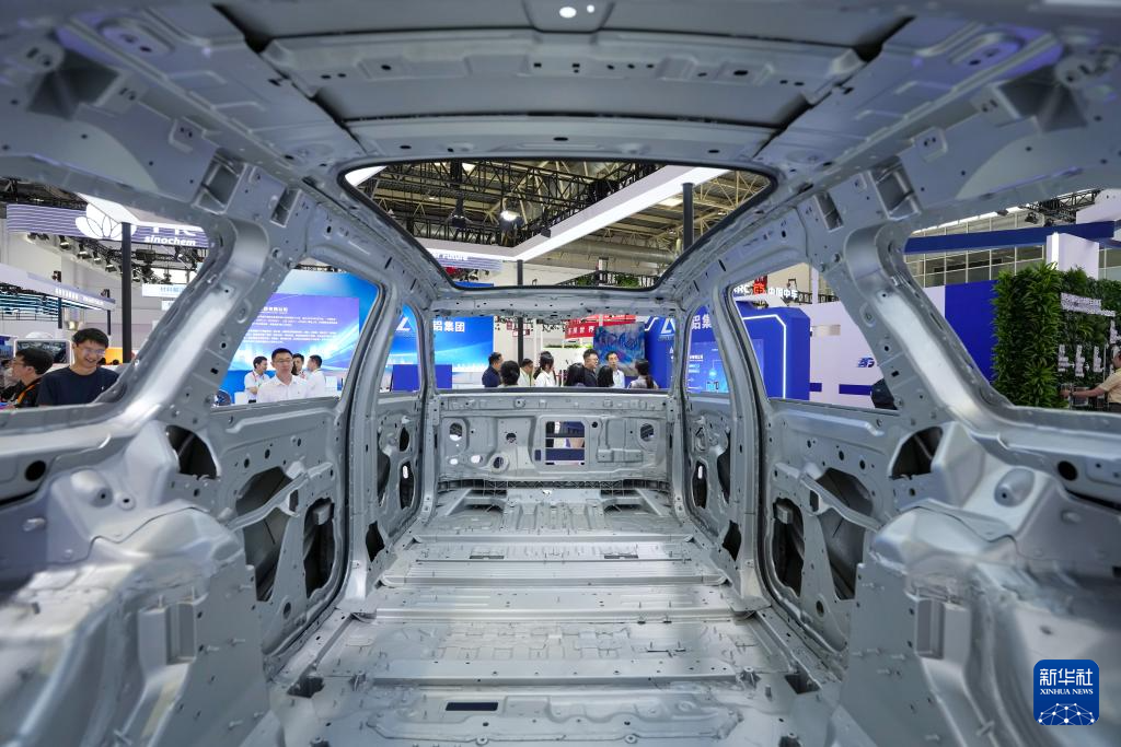 7月16日,人们在先进制造链展区中铝集团展台参观展出的铝制新能源汽车白车身。