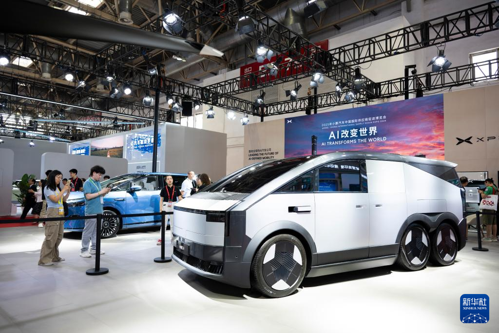 7月16日,参观者在智能汽车链展区了解一款小鹏汇天展车。