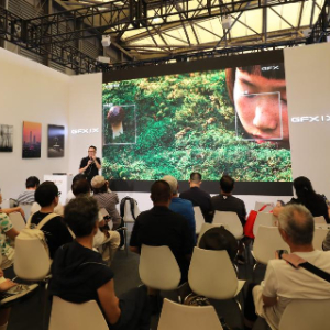 7月17日,摄影爱好者在展会现场进行动态影像拍摄体验。