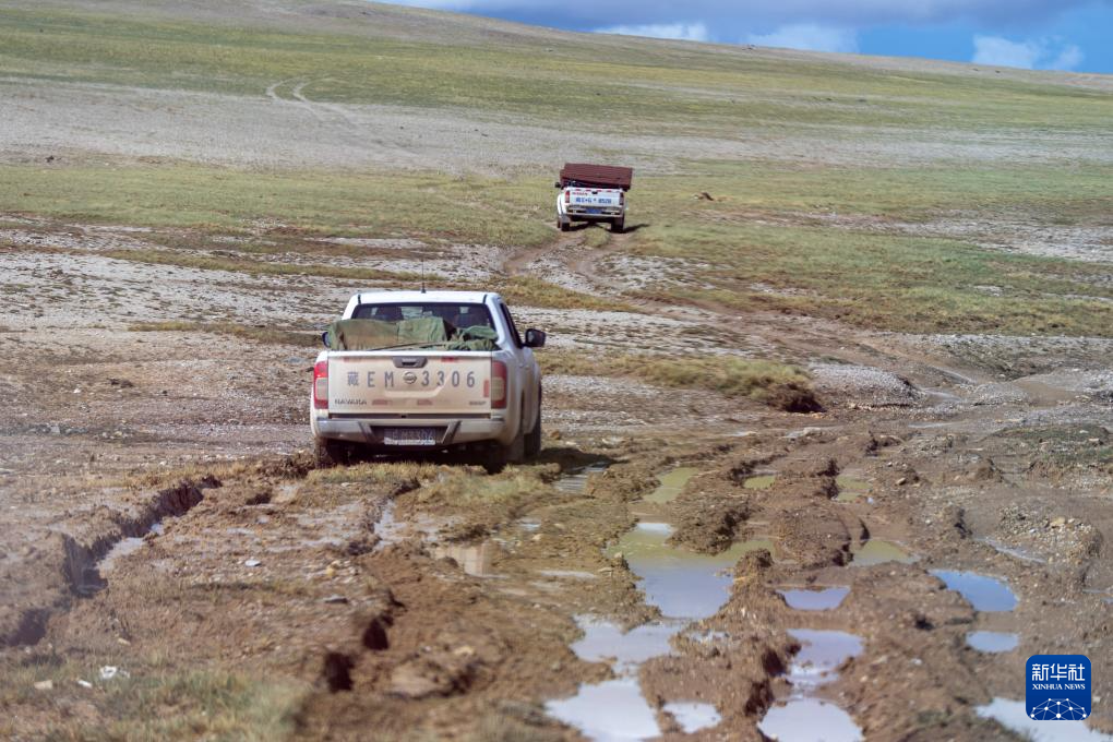 措罗木管理站的野生动物管护员驱车前往无人区深处的森隆藏布河畔(7月14日摄)。