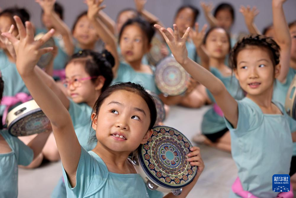 7月19日,孩子们在山东省枣庄市一家舞蹈培训机构练习舞蹈。