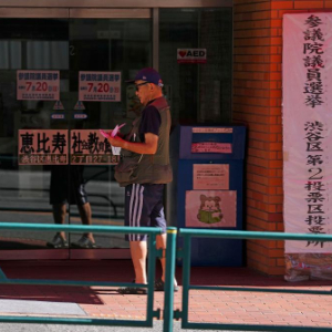7月20日,一名男子准备进入日本东京的一处投票站参加投票。
